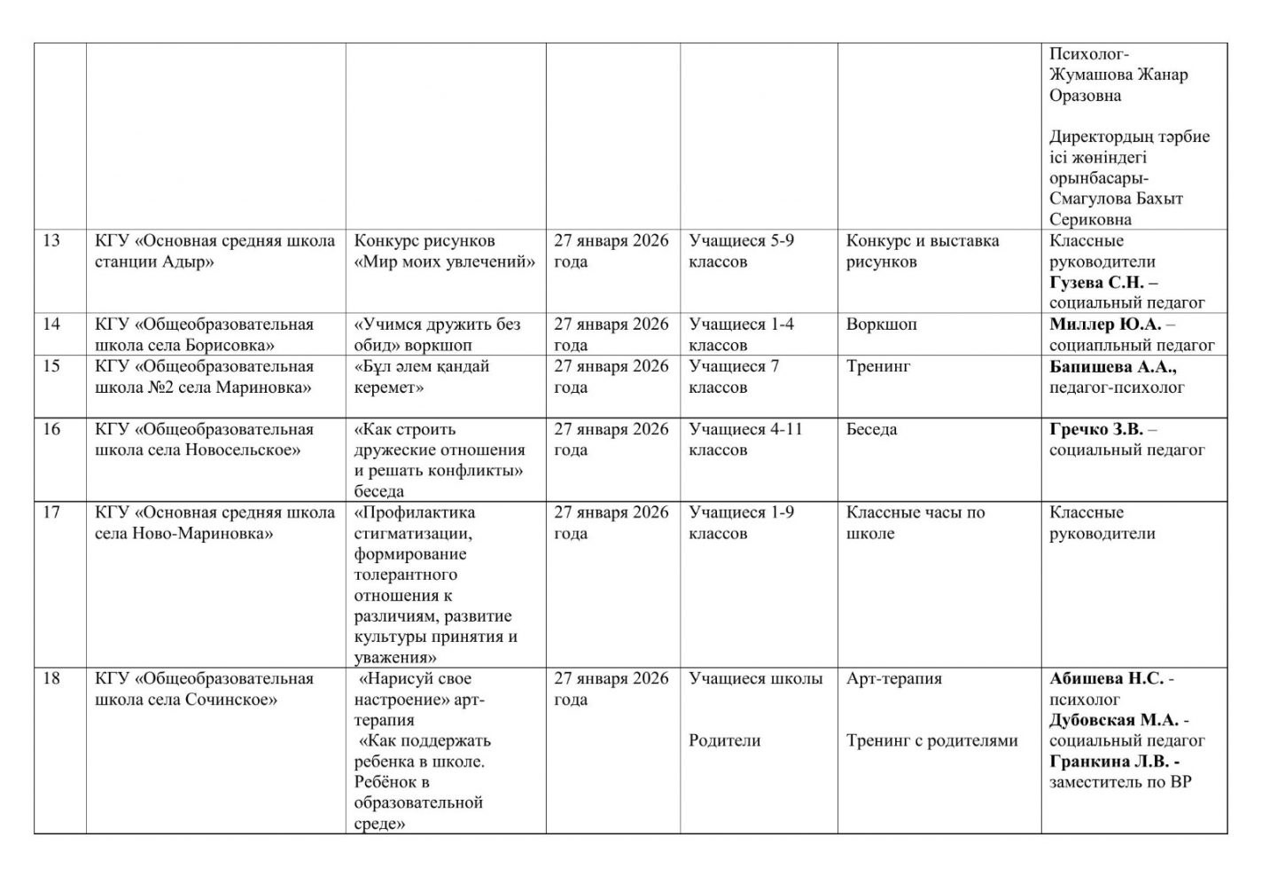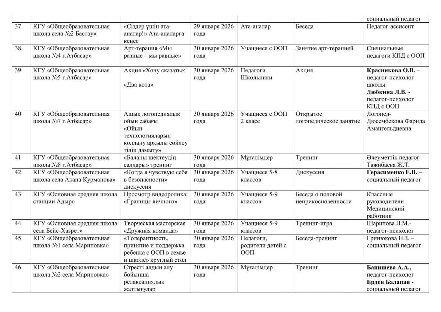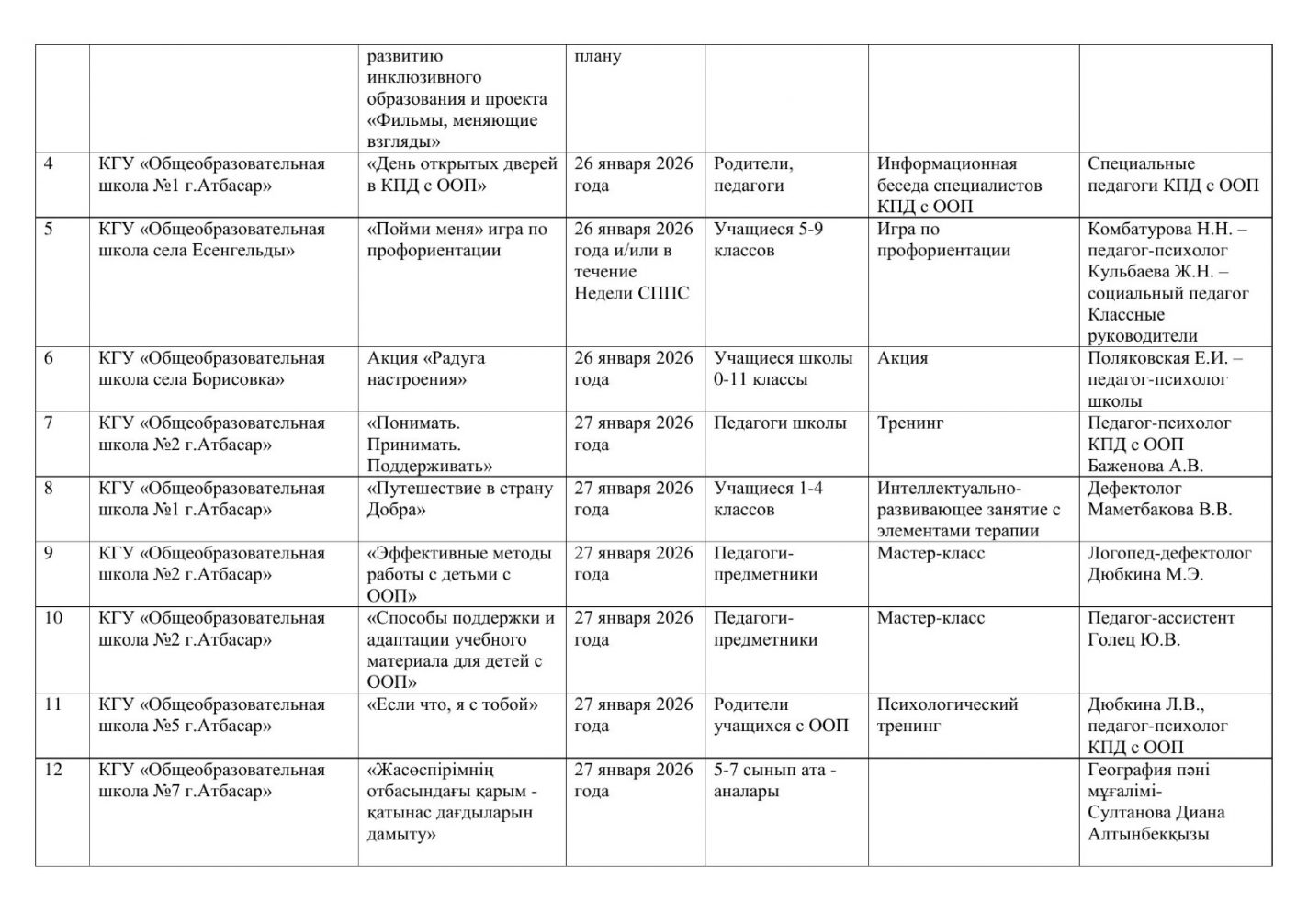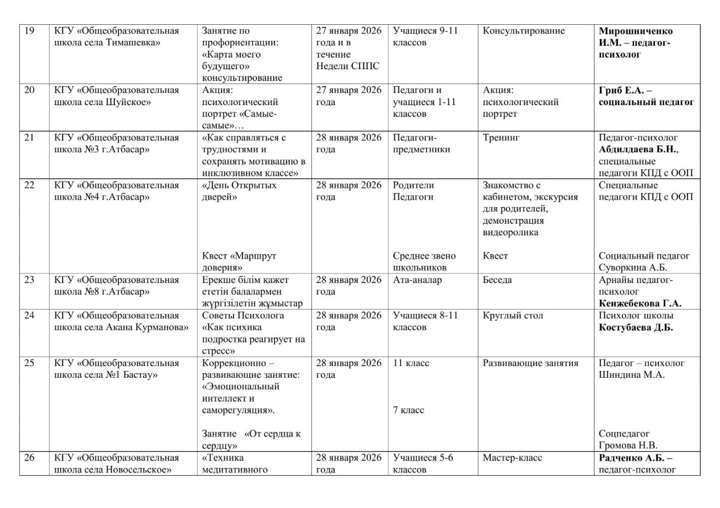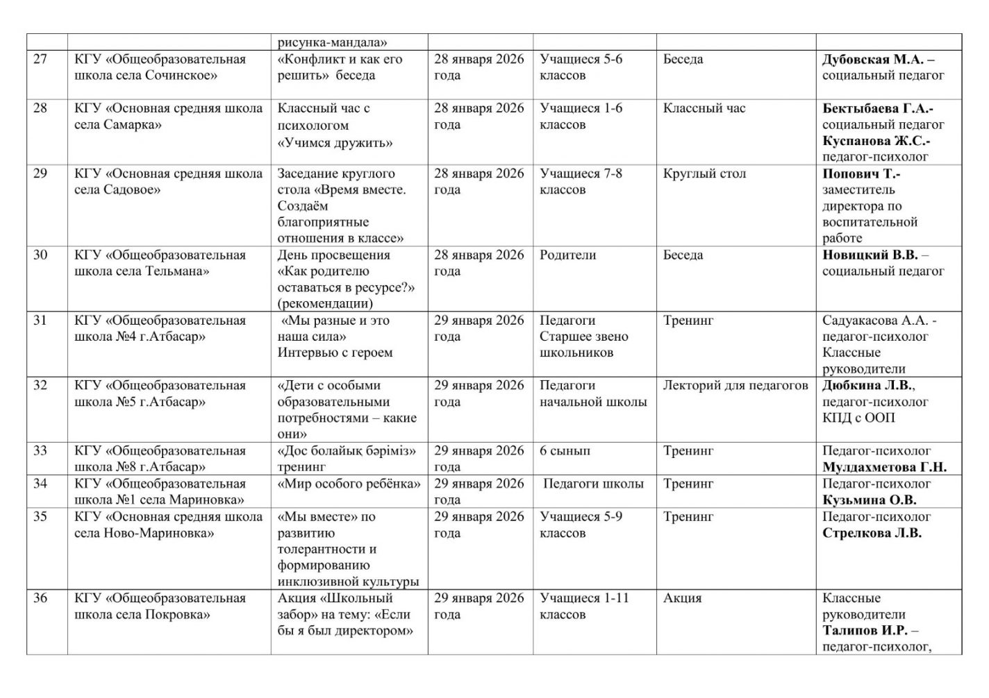 Кеңес әдіскерлері, білім бөлімдерінің басшылары және қауымдастықтар, педагог – психологтар, Ақмола облысы