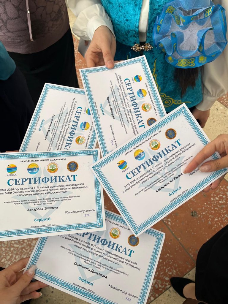 Байқау қорытындысы бойынша: 1 орынды Атбасар қаласындағы №2 жалпы білім беретін мектептің оқушысы Зарипова Венера; 3 орынды Атбасар қаласындағы №2 жалпы білім беретін мектептің оқушысы Опабекова Дильназ; грамотамен Атбасар қаласындағы №2 жалпы білім беретін мектептің оқушысы Асқарова Элина марапатталды .Қатысқаны үшін сертификаттар алды: Сағатпеков Мирас, Атбасар қаласындағы №1 жалпы білім беретін мектептің оқушысы; Калашникова Кира, Атбасар қаласындағы №6 жалпы білім беретін мектептің оқушысы. Бұл жетістіктер тек мектептер үшін ғана емес, бүкіл Атбасар ауданы үшін мақтаныш. Олар білім беру мен жас таланттарды қолдауға инвестиция салу нақты нәтиже беретінін көрсетеді.