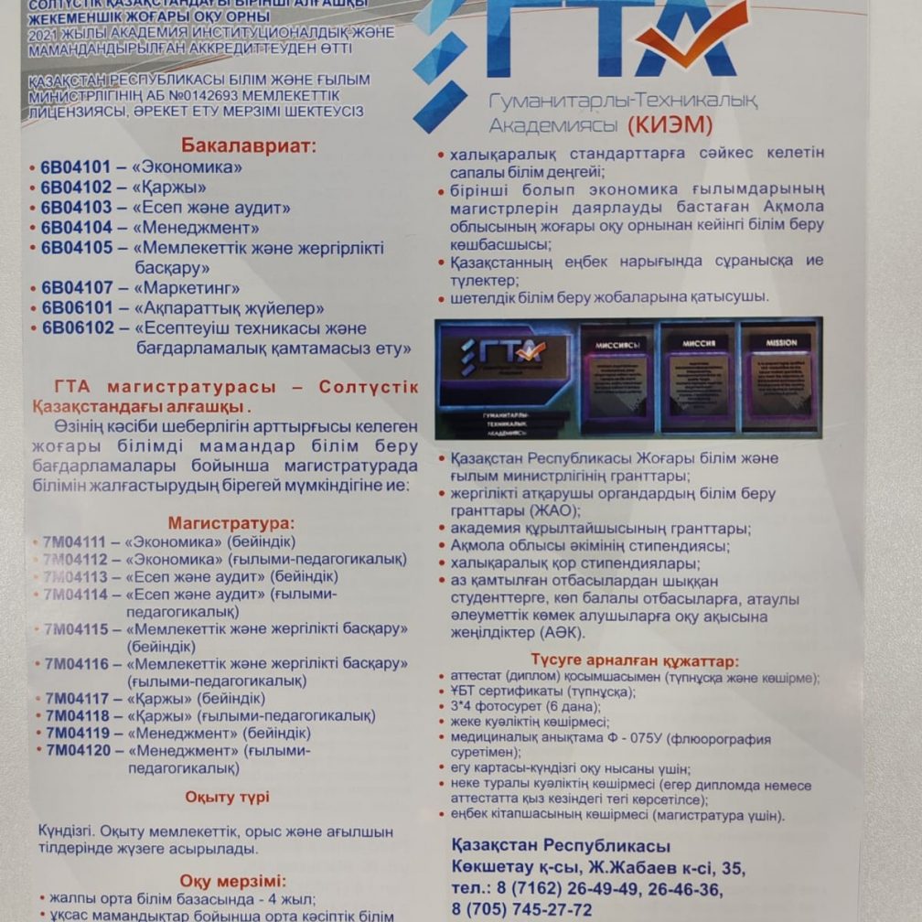 Көкшетау қаласының Гуманитарлық-техникалық академиясымен (КИЭМ) кәсіптік бағдар беру кездесуі